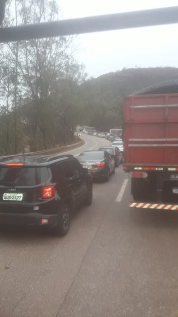 Pista da BR-040 segue interditada sentido BH após acidente, operando com siga e pare para ambos sentidos.