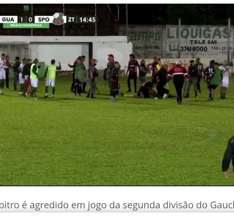 O árbitro Rodrigo Crivellaro foi agredido pelo jogador William Ribeiro, do São Paulo-RS, na noite desta segunda-feira, em jogo válido pela Série A2 do Campeonato Gaúcho – equivalente à segunda divisão do Rio Grande do Sul –, e precisou ser levado às pressas para um hospital em Venâncio Aires, na região central do Estado. Ribeiro foi detido pela Polícia Militar ainda no local.