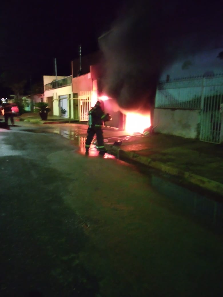 Quando os bombeiros chegaram verificaram que o veículo estava tomado pelas chamas, ameaçando também a residência localizada no segundo pavimento; com cerca de 2.000 litros de água os bombeiros conseguiram controlar as chamas debelando o incêndio, retirado o veículo do interior da garagem, sendo o proprietário orientado das providências a respeito principalmente a verificar a estrutura da residência que possa ter comprometido devido ao calor excessivo.