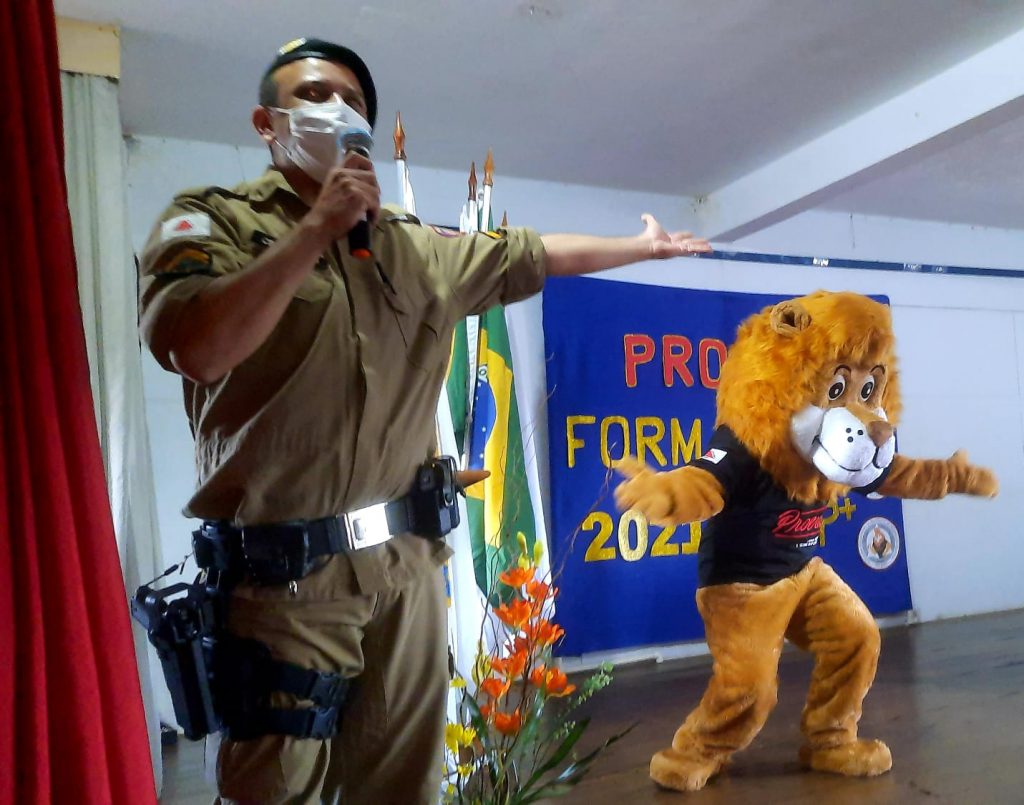 O Cb Tarcísio da 73° Cia de Congonhas do Proerd foi quem ministrou as aulas e realizou a formatura com maestria.