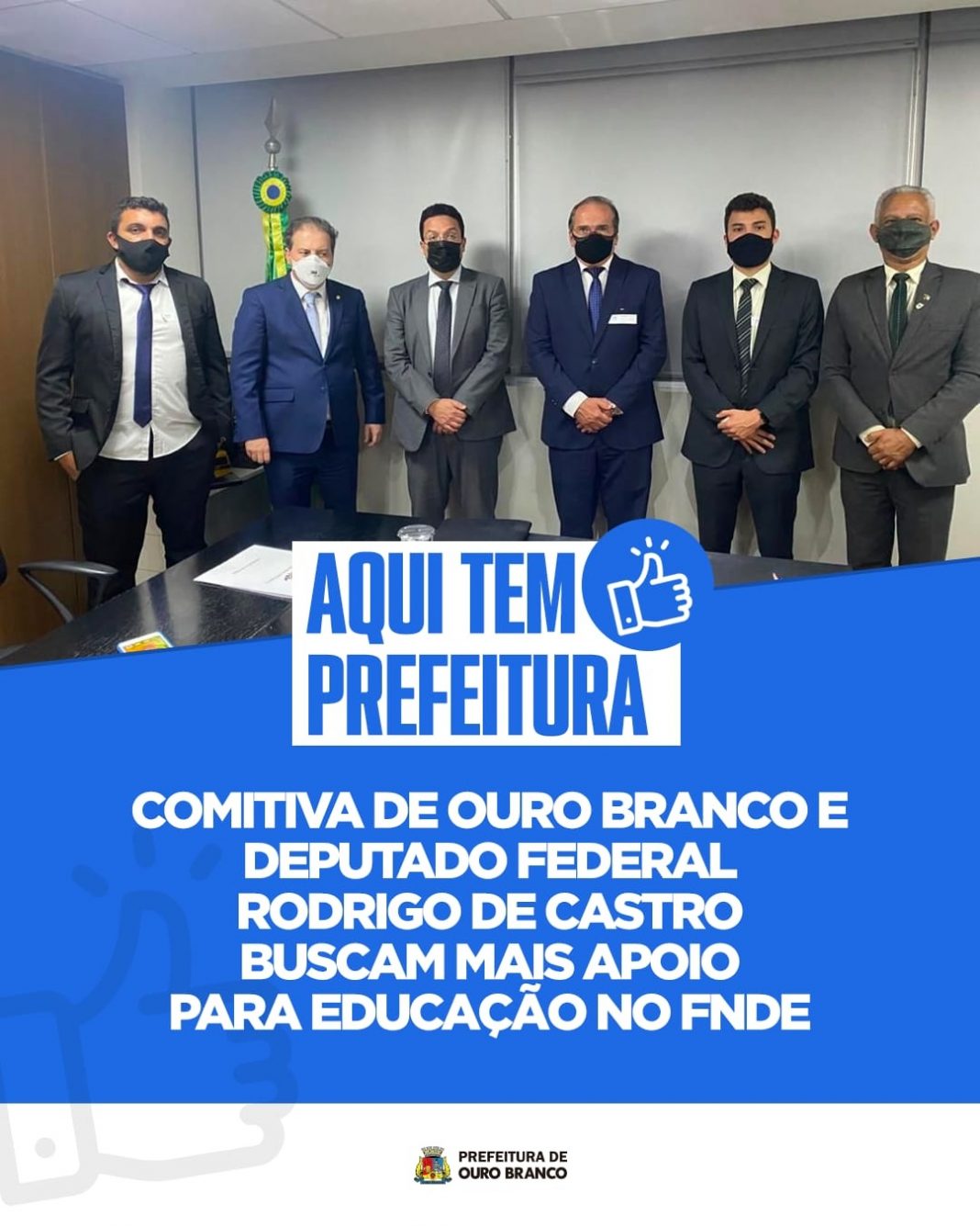 Educação em pauta. O deputado federal Rodrigo de Castro se reuniu com a comitiva de Ouro Branco que está em Brasília. O grupo esteve em reunião no Fundo Nacional de Desenvolvimento da Educação (FNDE) em busca de recursos para melhorar ainda mais o ensino para os alunos da cidade.