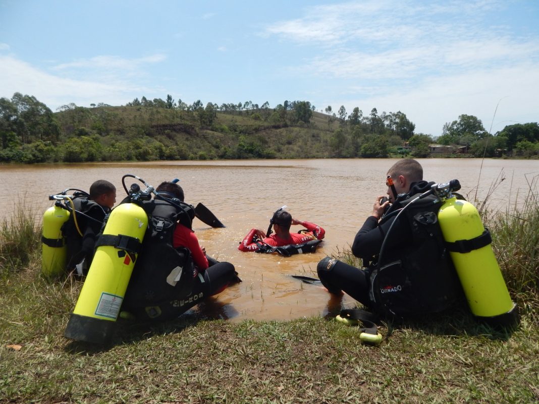 “Sem dúvidas, uma das atividades mais perigosas da nossa área de atuação”. É assim que o Comandante do Segundo Pelotão de Bombeiros de São João del-Rei, Tenente Guimarães, define a prática de mergulho autônomo. E foi com a finalidade de complementar a capacitação de 14 Soldados recém-formados na corporação que os Bombeiros promoveram uma semana inteira de credenciamento em mergulho. As aulas práticas foram ministradas durante toda a semana em uma piscina na Segunda Companhia de Bombeiros de Conselheiro Lafaiete e a atividade final ocorreu nesta quinta-feira, dia 7, na antiga represa dos Moinhos, em São João del-Rei.