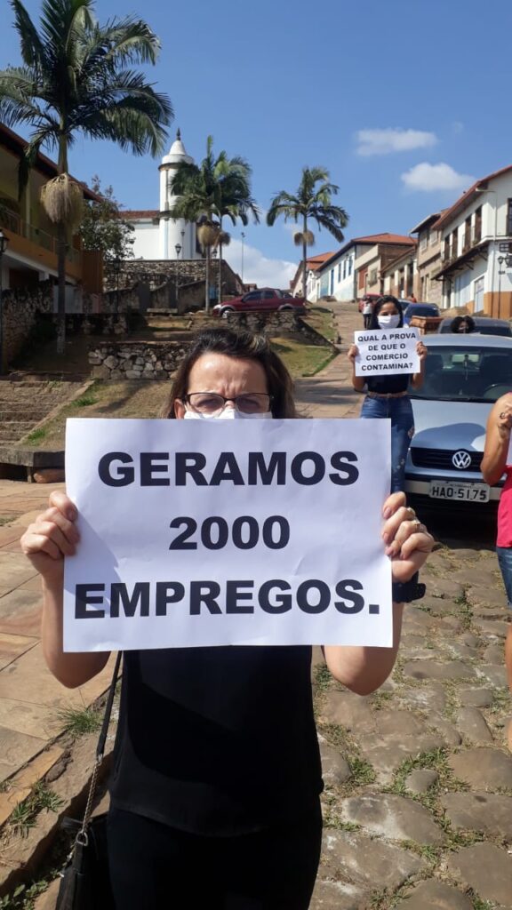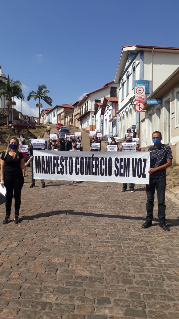 Com faixas e adesivos em frente às lojas e buzinaço, eles querem que Governo do Estado permita o retorno ao trabalho.