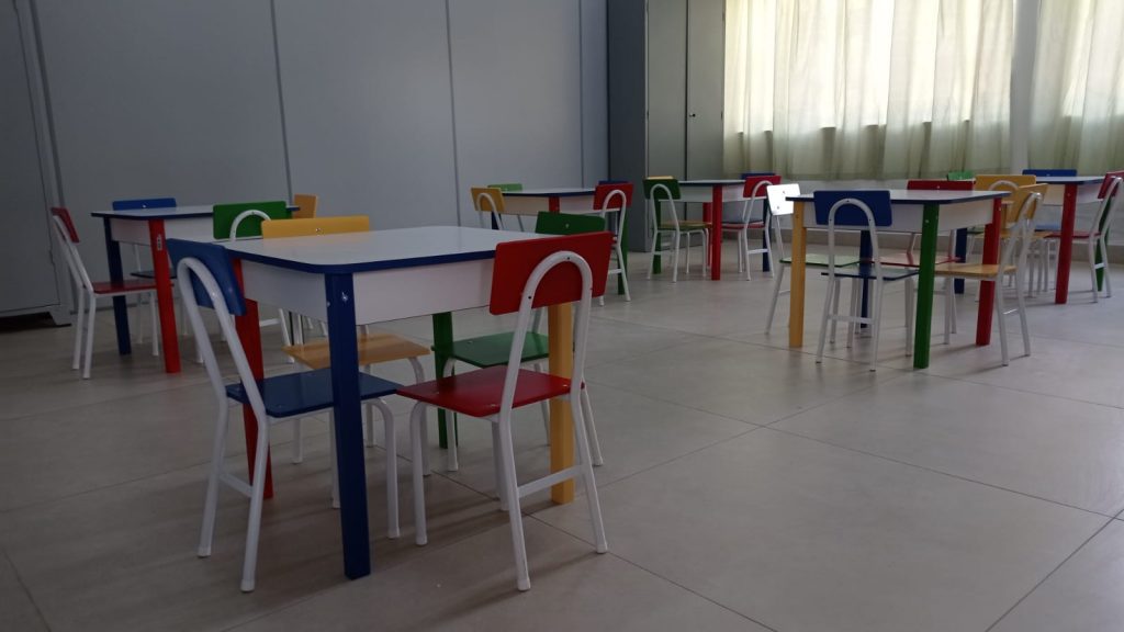 As novas instalações contam com salas bem arejadas, novo mobiliário para as crianças, cozinha industrial para aulas de culinária, amplo refeitório, banheiros adaptados, além de espaço kids, salas para diretoria e setores administrativos.