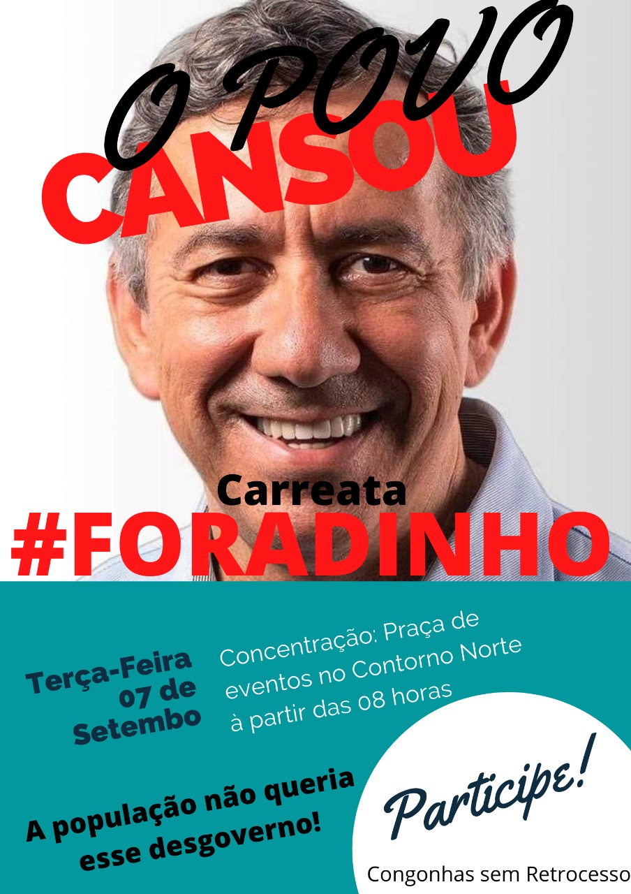 Grupo promete se manifestar contra prefeito neste dia 7/9 em carreata Congonhas setembro 6, 2021 Share FacebookTwitterPinterestWhatsAppTelegram Movimento por uma “Congonhas Sem Retrocesso” Convida a população para uma carreata mostrando a insatisfação contra o “des”governo da administração do prefeito Dr. Cláudio, o Dinho.A concentração se dará na Avenida Contorno Norte as 8 horas. Share FacebookTwitterPinterestWhatsAppTelegram Ultimas Noticias Lafaiete Dadim comanda a festa dos 82 anos do Atlanta e promete transformar o clube em roda de pagode Nilson Canuto - abril 27, 2026 Congonhas Em Diamantina, Congonhas fortalece compromisso com patrimônio e desenvolvimento turístico Nilson Canuto - abril 27, 2026 Congonhas Rodovias da região terão bloqueios durante Simulado de Emergência em Congonhas Nilson Canuto - abril 27, 2026 Esporte Hulk pode sair do Atlético após ser cortado do jogo contra Flamengo Nilson Canuto - abril 26, 2026
