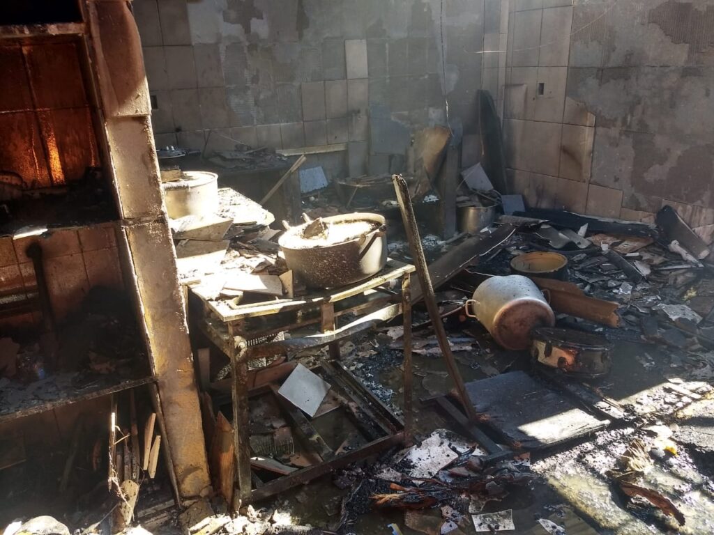 Lá chegando os bombeiros depararam com um incêndio ocasionado pelo vazamento de gás de cozinha gerando a queima de um fogão industrial e de um freezer horizontal e que destruiu também todo o telhado de amianto e as instalações da cozinha, panelas e demais utensílios atingindo também o forro de PVC da referida igreja .