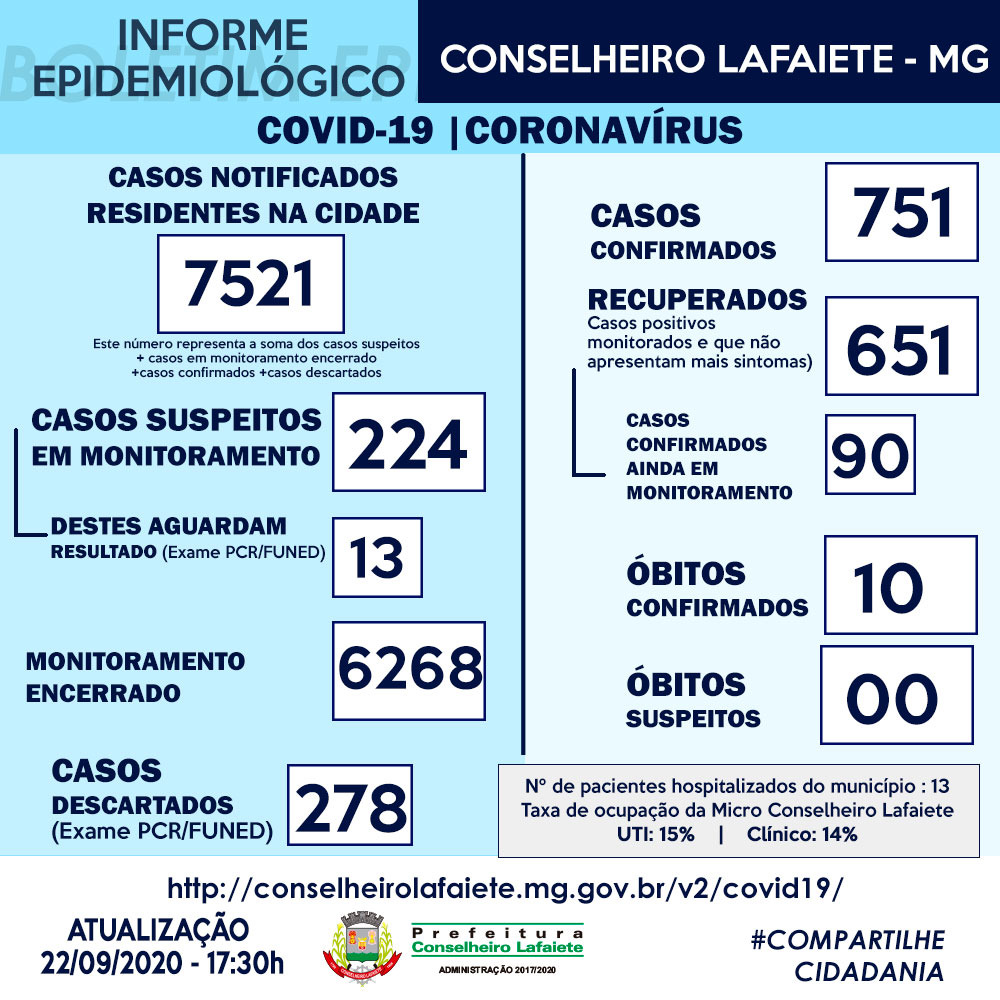 A Prefeitura de Conselheiro Lafaiete através da Secretaria Municipal de Saúde e do Serviço de Epidemiologia com o compromisso de manter a população sempre a par das ocorrências ligadas ao combate ao COVID 19 confirmou dezenove novos casos de Coronavírus em Conselheiro Lafaiete.