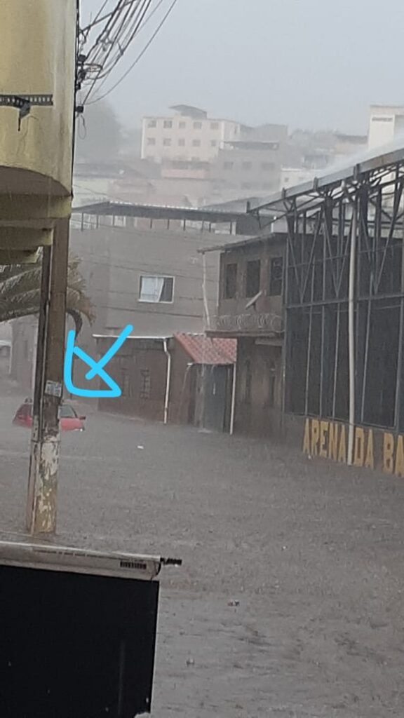 Durante a chuva, o Corpo de Bombeiros foi acionado para ocorrências de inundação pessoas ilhadas na rua Brasil, no Bairro Jardim América em Lafaiete.