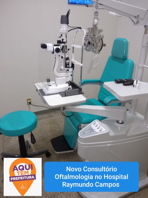 O novo Consultório de Oftalmologia conta com auto refrator; lâmpada de fenda; mesa para lâmpada de fenda; tonômetro; refrator de greens; lensômetro computadorizado, monitor de vídeo, mocho e poltrona.