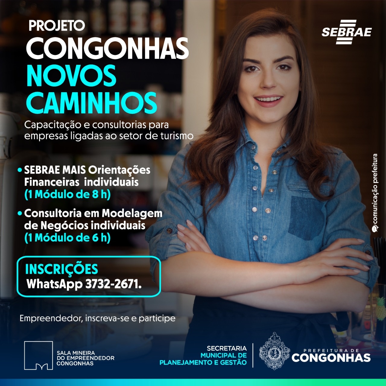 A Prefeitura de Congonhas em parceria com o SEBRAE apresenta o Projeto Congonhas Novos Caminhos, que oferece capacitação e consultoria para empresas ligadas ao setor de turismo como bares, restaurantes, hotéis, cafeterias, lojinhas de produtos turísticos, quitandas dentre outras.